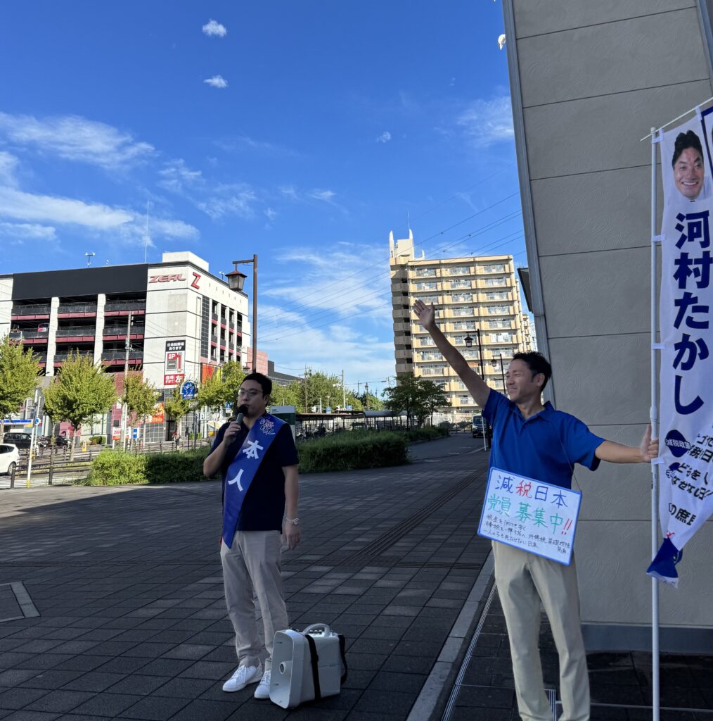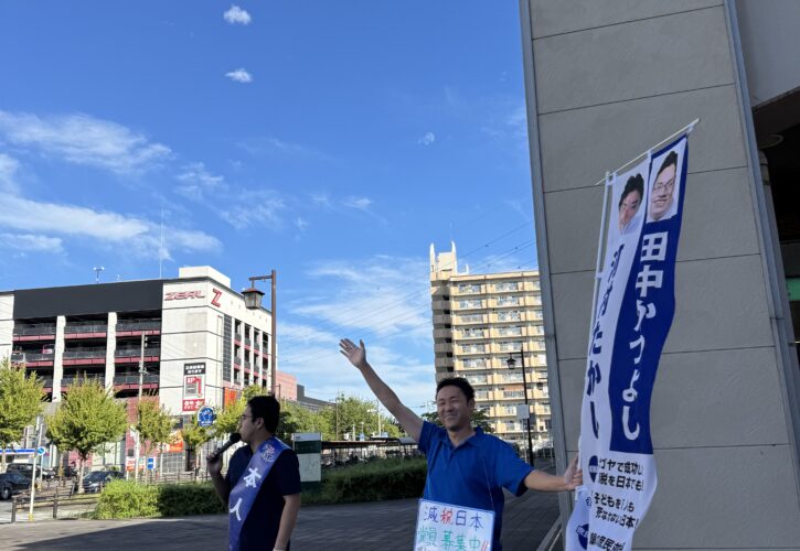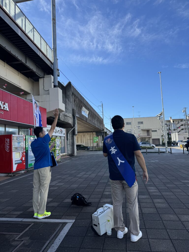 綺麗な青空の下での街頭演説、撮影のために来ていただいているボランティアさんにも感謝です!