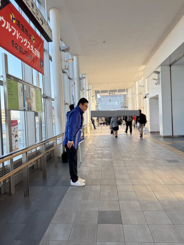 62回目の街頭活動、今朝は枇杷島駅で行いました。