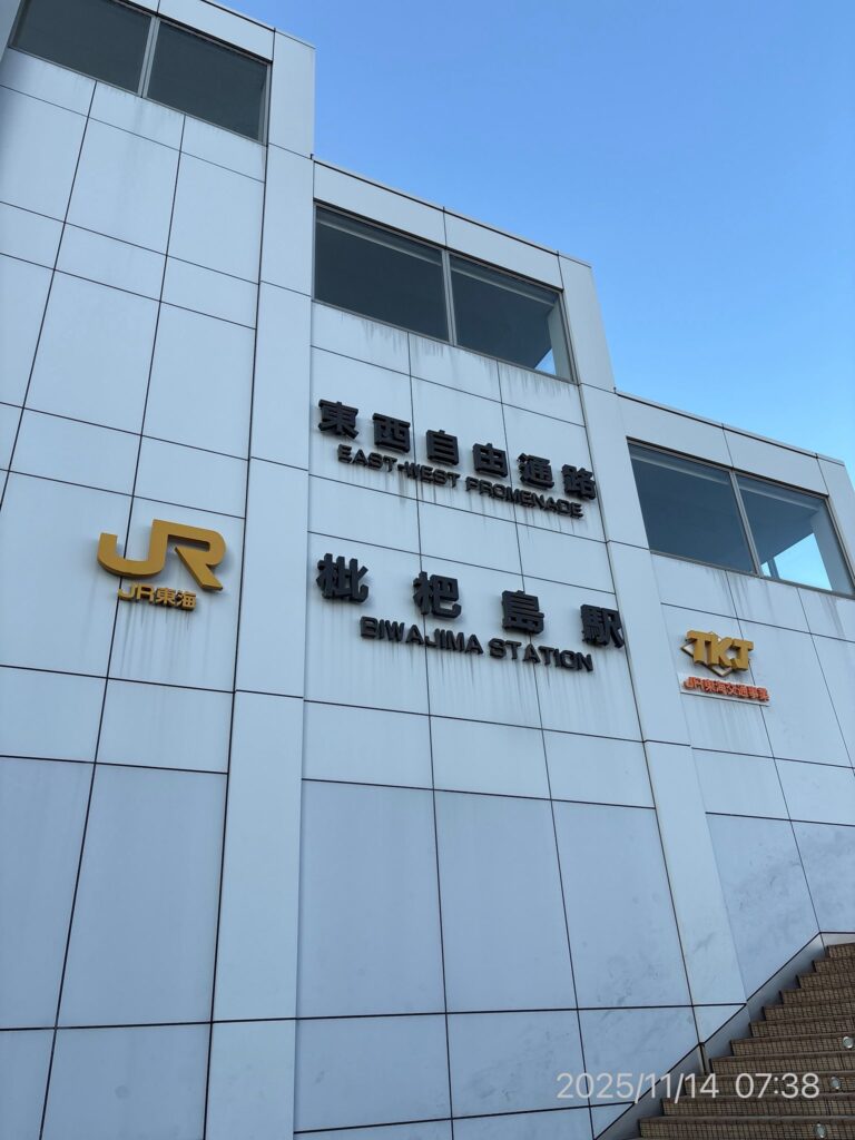枇杷島駅は屋内自由通路のため、拡声器ではなく地声で挨拶活動をします。