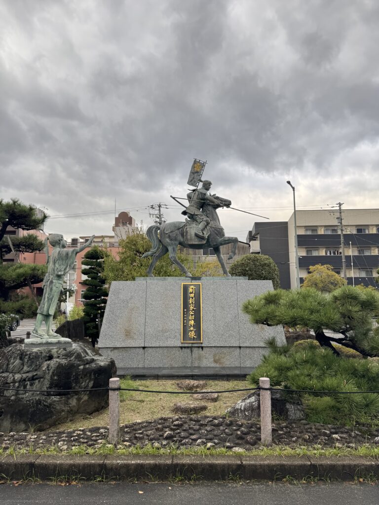 写真は前田利家像に向かって演説する私の後ろ姿を、ボランティアさんに撮っていただきました!